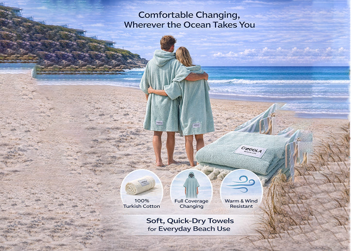 They’ll keep you warm and protect you from the ocean breeze in winter and are sure to be your best friend in summer – so any of our surf ponchos (which come in blue, charcoal, sand and green) are sure to be a year-round investment.
