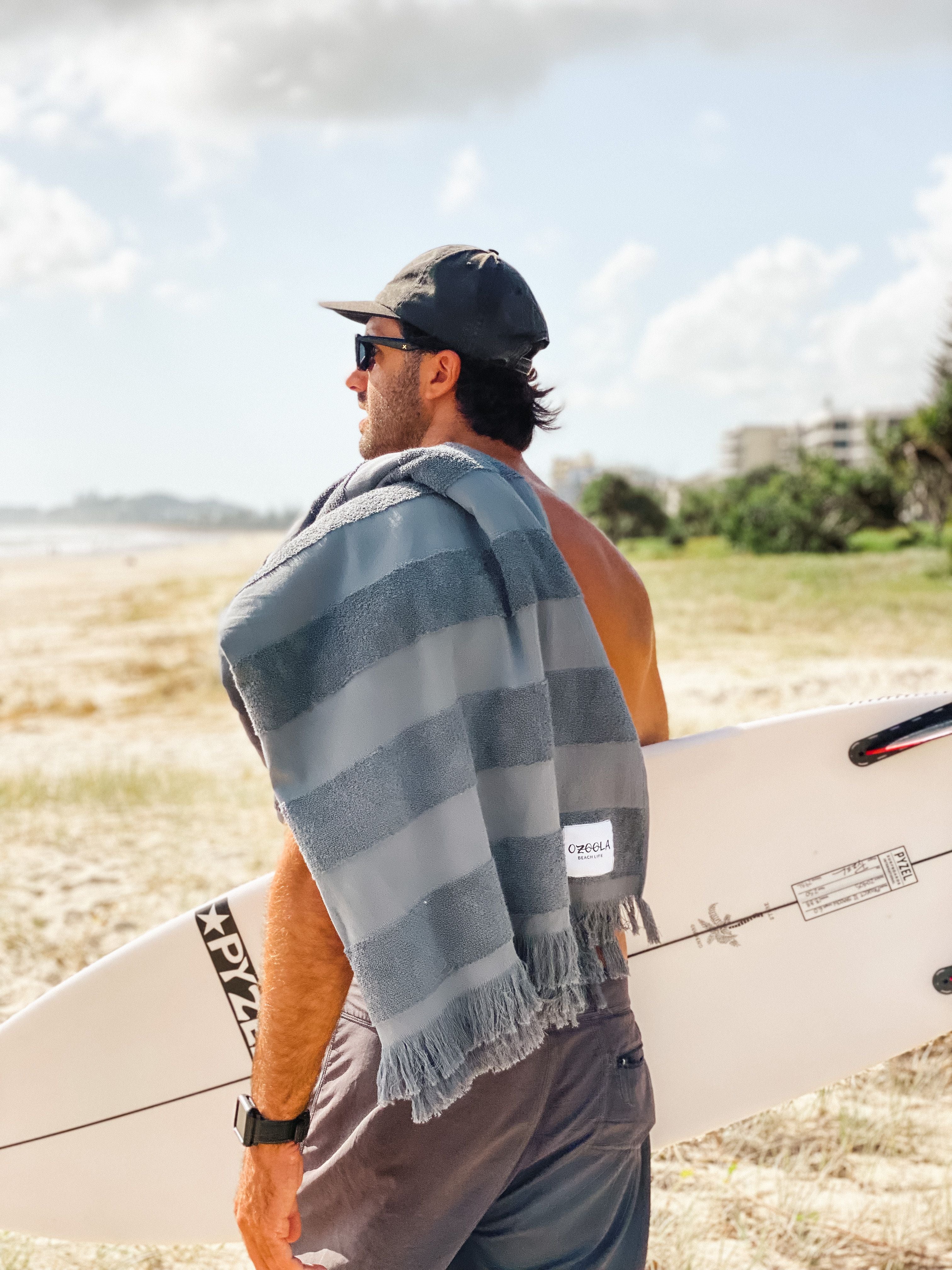 Made from 100% Turkish Cotton, super soft and remarkably quick dry, our one size fits all surf ponchos are equal parts stylish and practical. They come with their own bag, which you can use to carry your poncho to the beach and chuck all your gear in whilst surfing. Best of all, they make changing at the beach super easy and private.